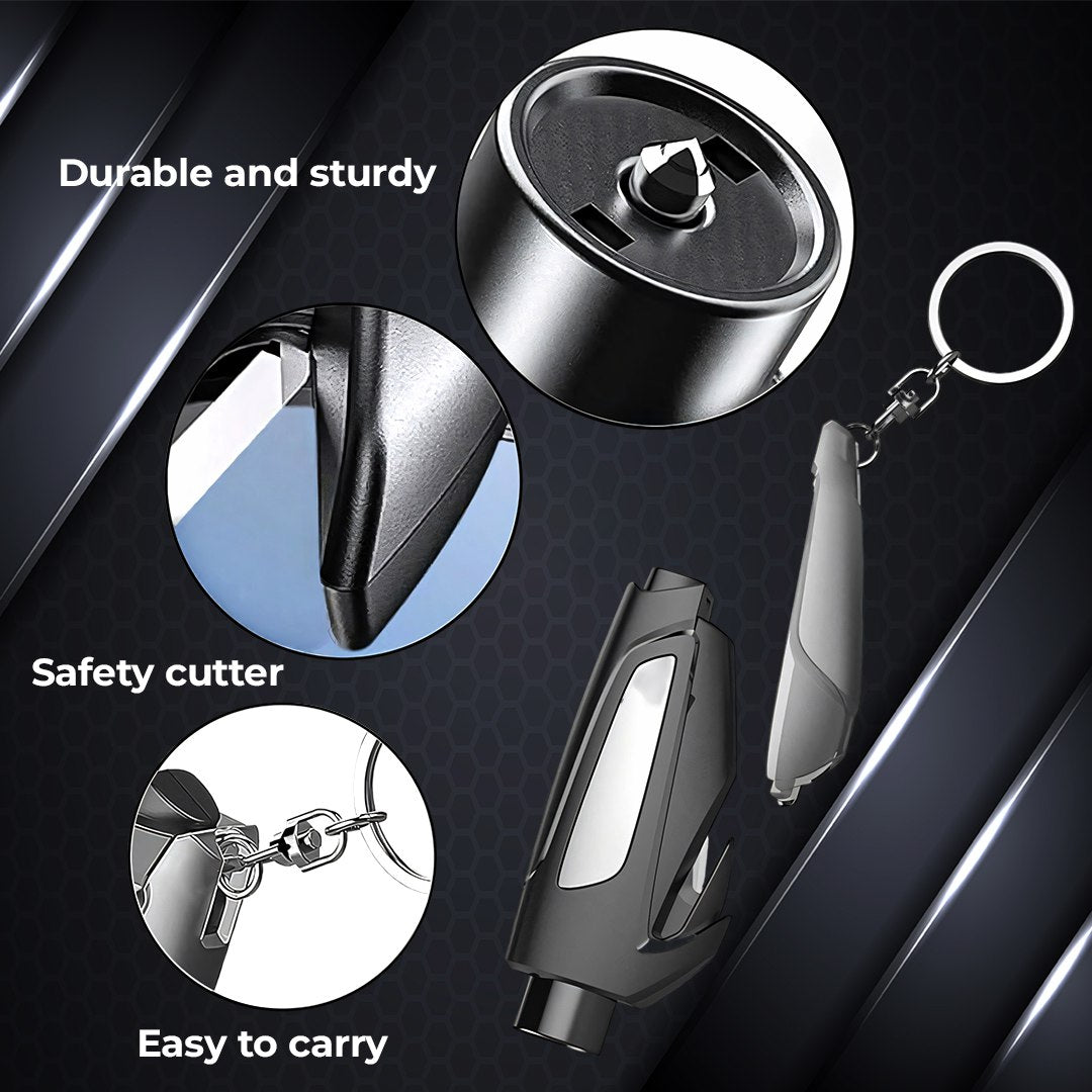 - Window Breaker – Spring-loaded tungsten tip shatters side windows instantly for a fast escape.