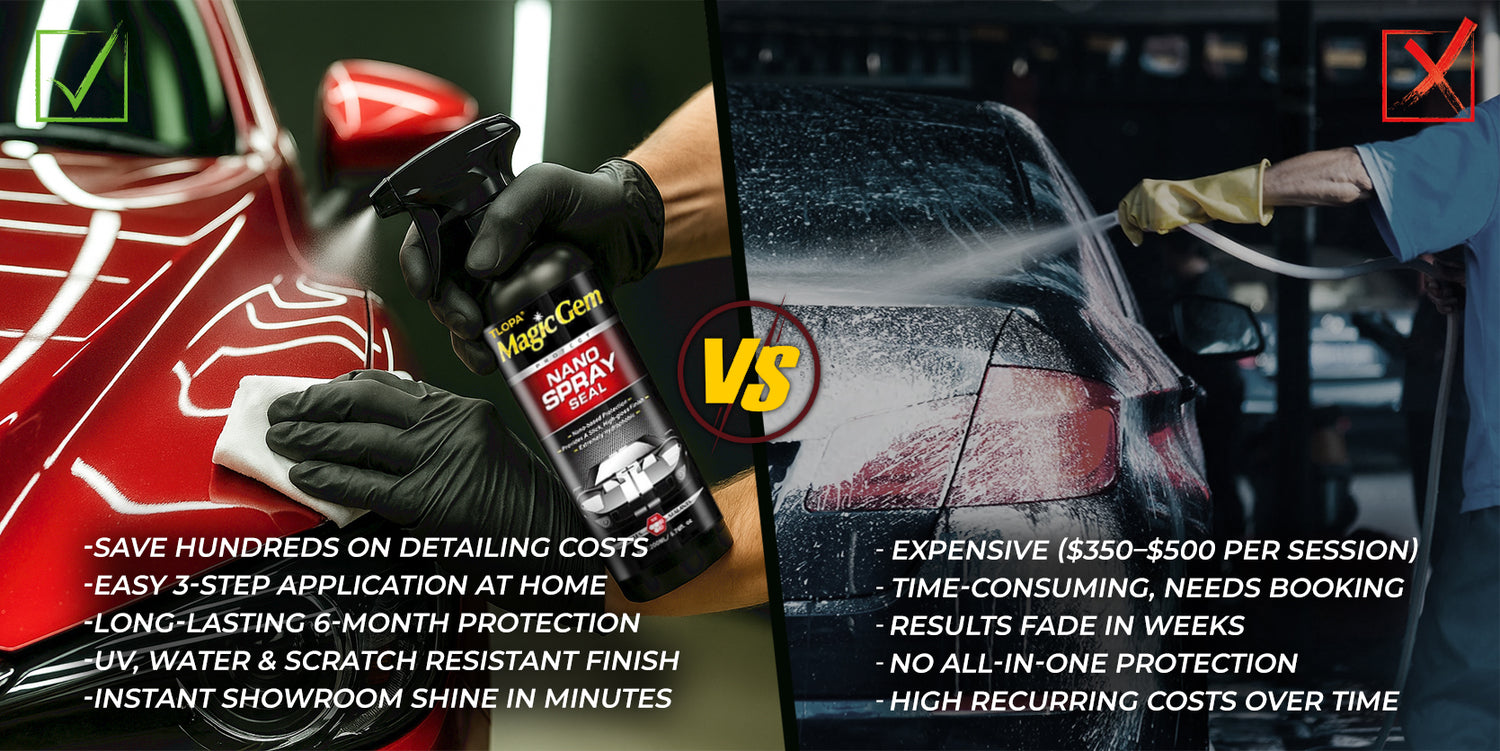 Why spend hundreds of dollars and waste hours at expensive detailing shops, only to see the shine fade in a few weeks? With Magic Gem Spray, you can restore showroom gloss, protect against UV, scratches, and dirt—all in just minutes, right at home. No hassle, no hidden costs.